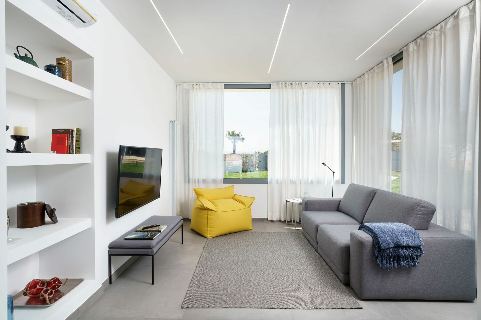 De omhyggeligt designede og møblerede udendørsrum er hovedtrækkene i huset. Store terrasser omkranser huset, og der er en frodig, velholdt middelhavshave med en skøn saltvandspool til afslapning og afkøling på varme sicilianske sommerdage.