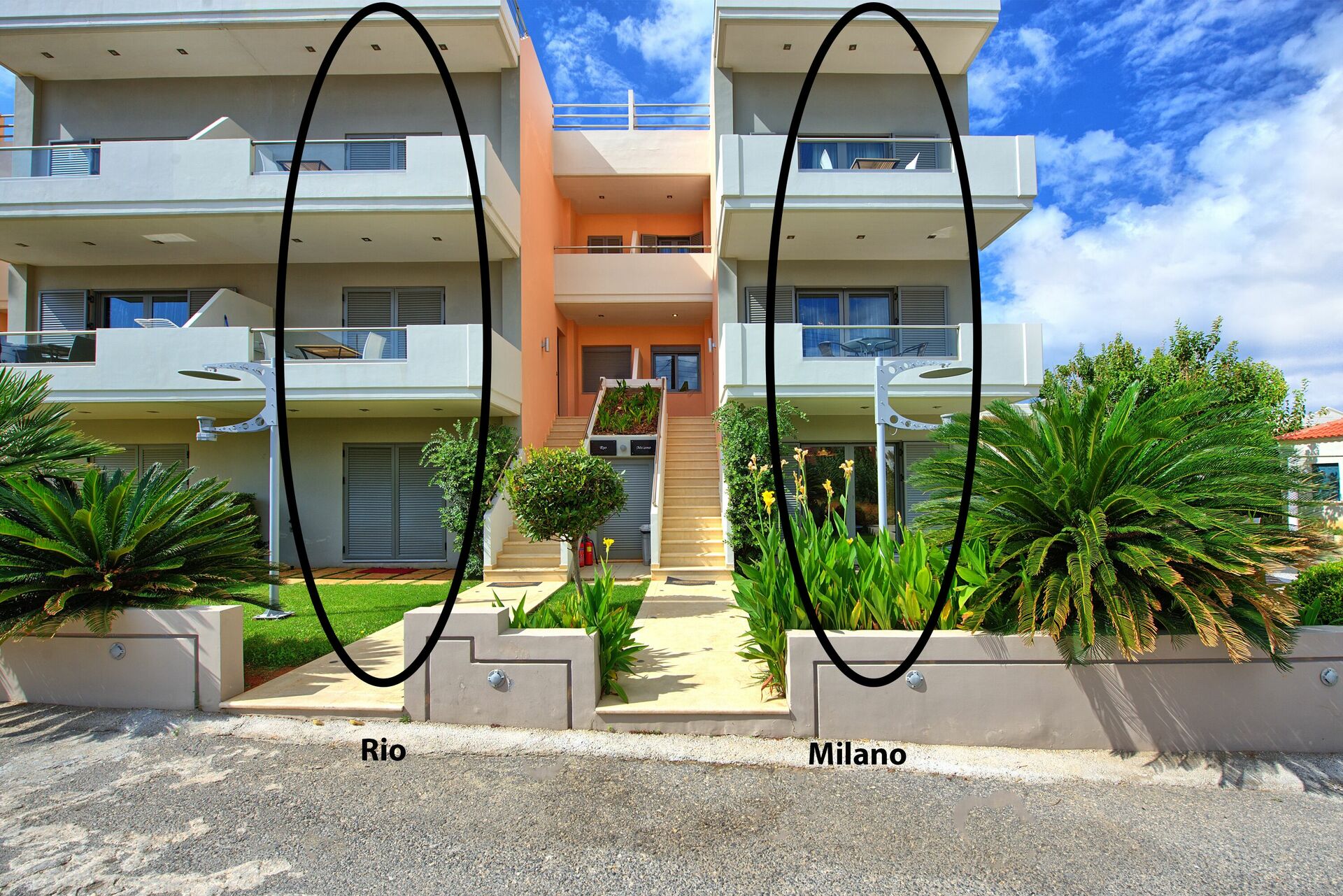 Cabanavillas Rio is a property made up of 3 villa rentals (townhouses), just 100 meters from Agia Marina beach, Crete.