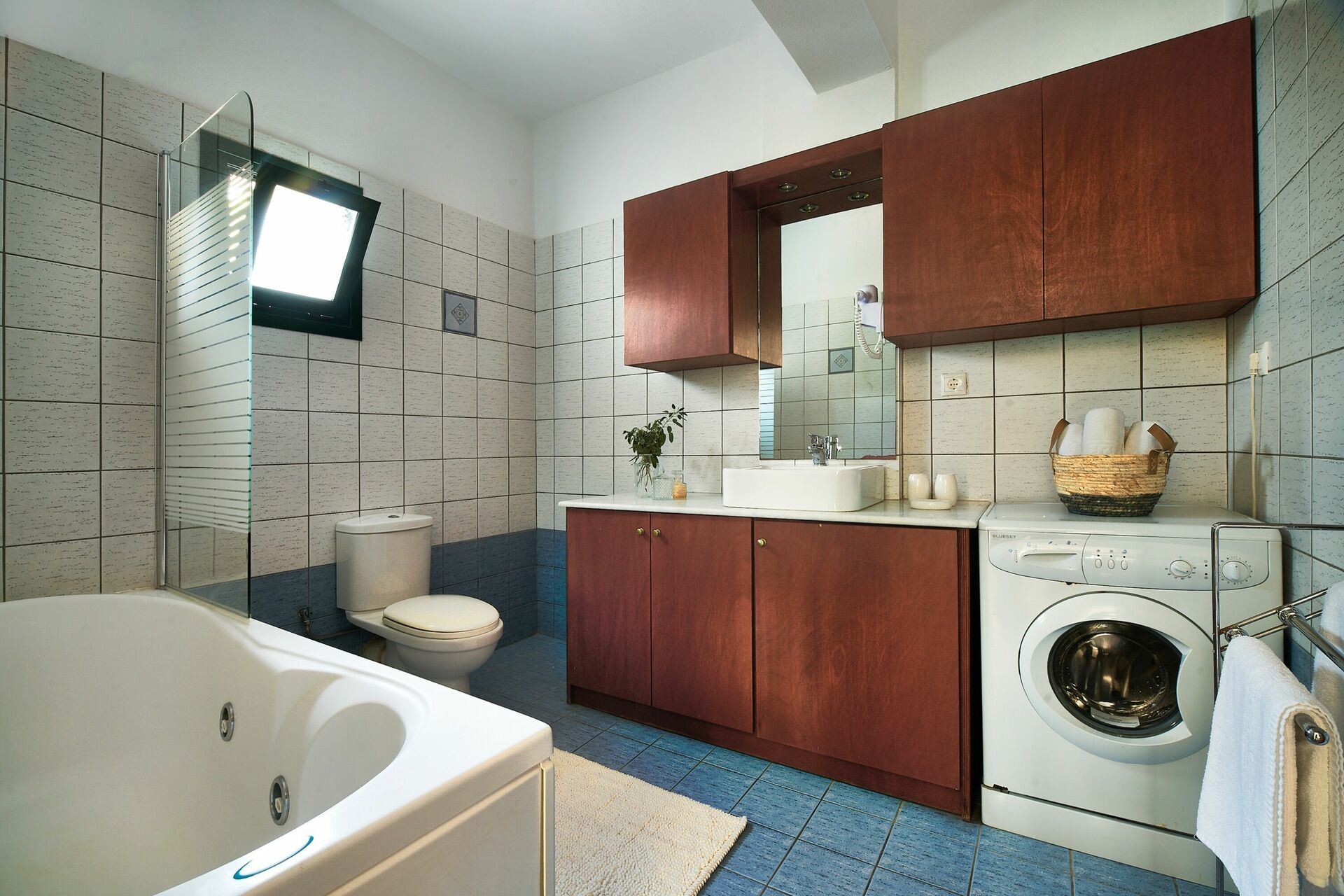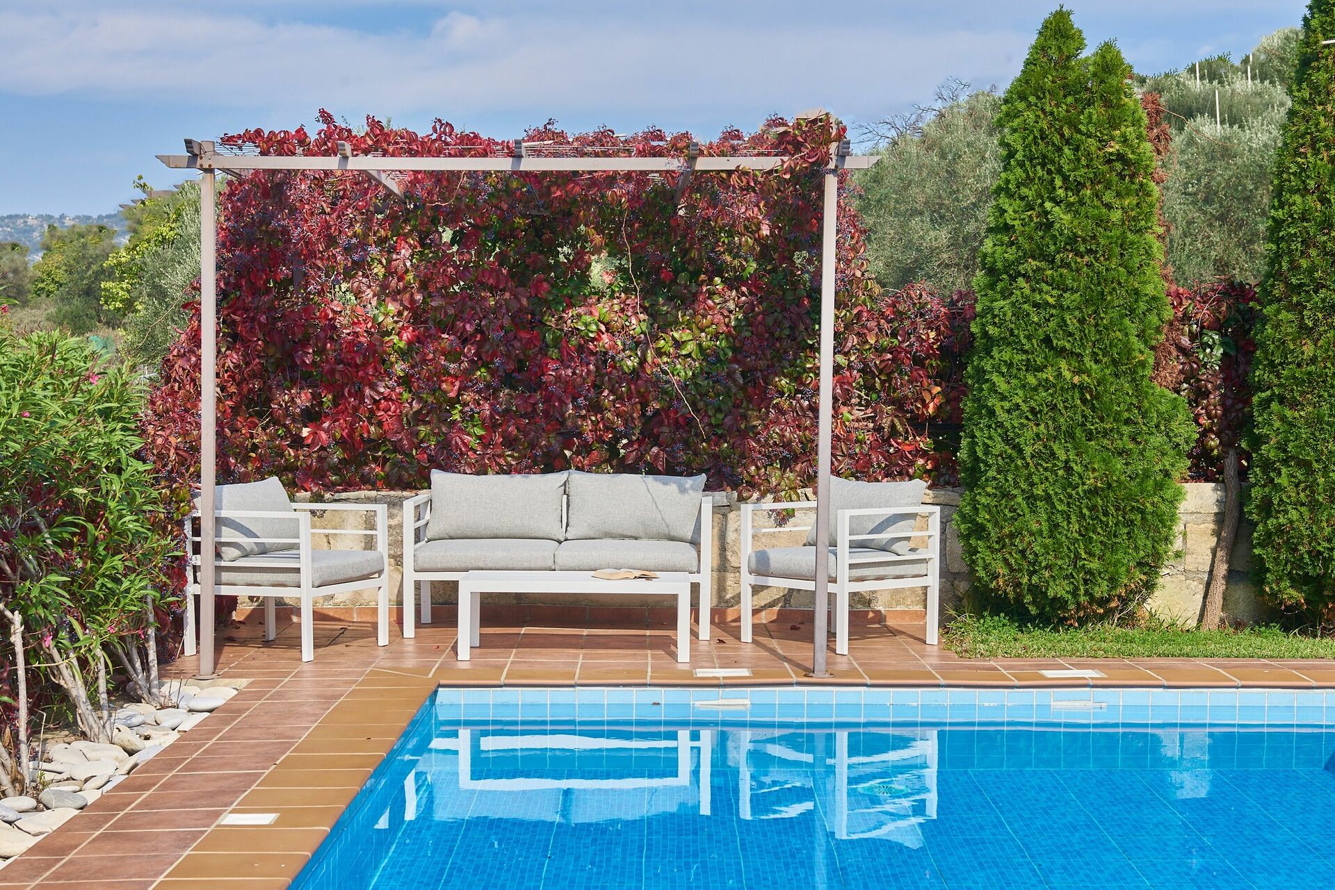 Outside, it offers an enclosed garden equipped for outdoor dining, and a beautiful private pool for relaxing and having fun with family and friends on Crete’s hot days.